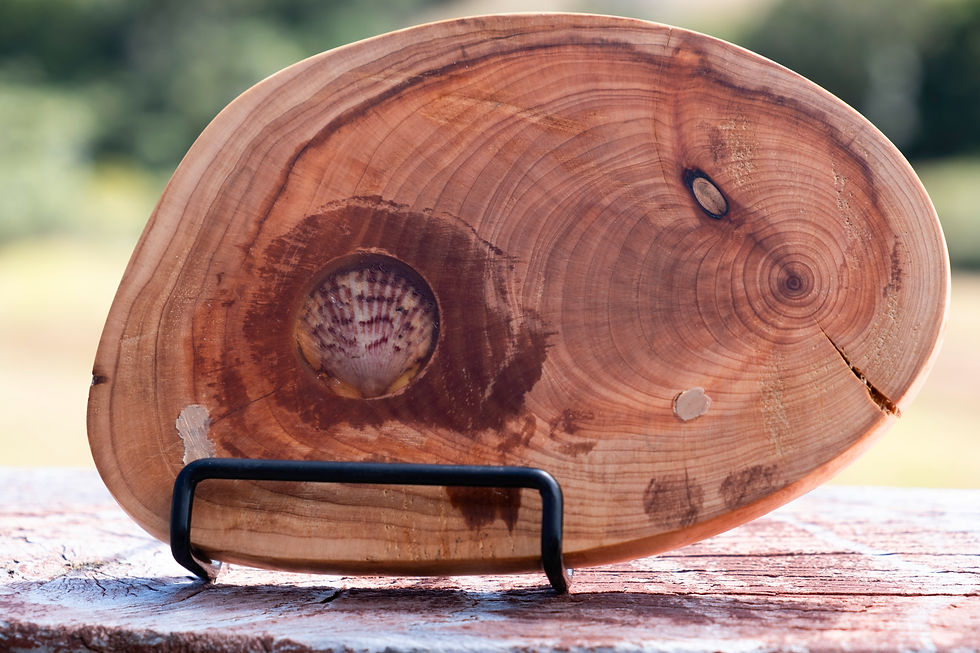 Serving Board: Himalayan Cedar with Pacific Calico Scallop Shell
