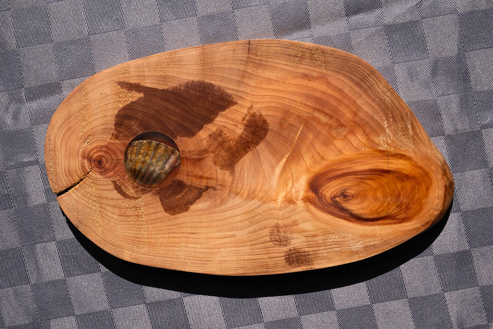 Serving Board: Himalayan Cedar with Pacific Calico Scallop Shell